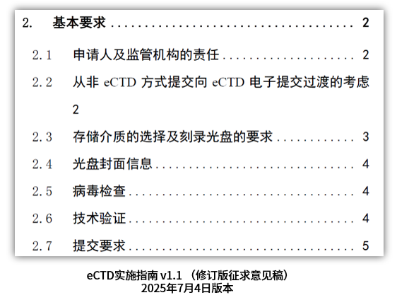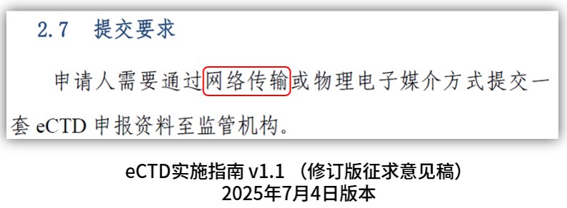 eCTD實施指南 v1.1 (修訂版征求意見稿)中2.7章節提交要求中增添“網絡傳輸”