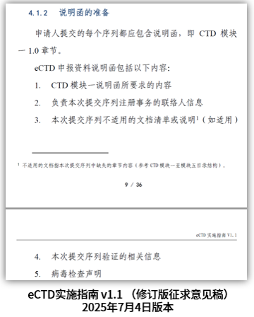 實施指南 v1.1 (修訂版征求意見稿)中將敘述中的“紙質遞交”調整為“非eCTD方式提交”