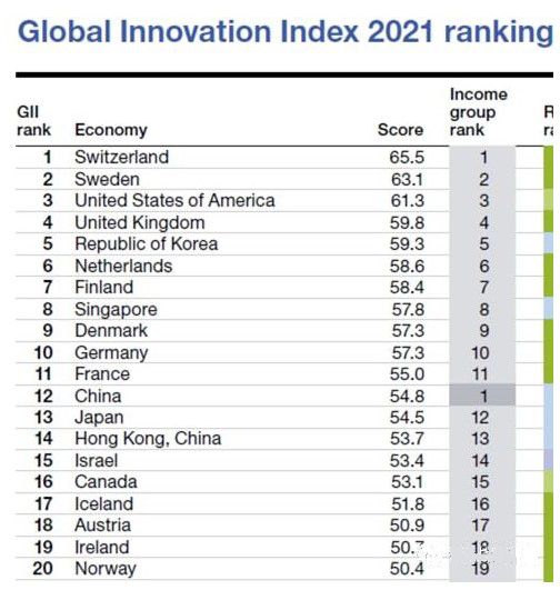 今年九月,世界知識產權組織(WIPO)也發布了《2021年全球創新指數》報告。報告指出,盡管新冠疫情持續發酵,但創新投資仍具有彈性,瑞士、瑞典、美國、英國和韓國位居全球創新指數排名前五,中國排名第 12。